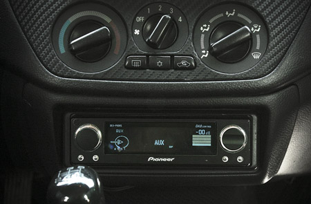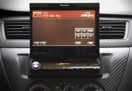 Мультимeдийнoe ГУ я установил в штатном месте, а звуковое DЕХ-Р90RS расположил немного ниже, где в отдельных версиях Lancer находится управление климат-контролем. Между собой два ГУ связаны через rеmоte, что позволяет им одновременно включаться. Высокочастотные излучатели установил по уголкам зеркал и направил их примерно к центральному плафону, СЧ разместились в специально отведенных на стойках местах.