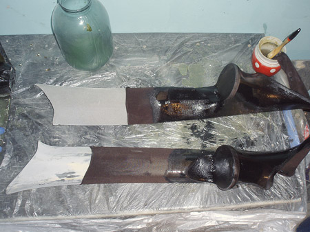 Для того, чтобы установить в стойку 4-дюймовый динамик, пришлось провести максимальное стачивание внешнего фланца. Стойки изготавливались по всем известной технологии, с использованием эпоксидной смолы и текстиля, динамики крепили через втулки, для чего стягивали внешнее и монтажное кольцо, которое вместе с тем прижимало защитную сетку. Заднюю стенку, которая образовывает закрытый объём среднечастотному динамику, также делали из стекловолокна и смолы, и после этого стойка прикреплялась изнутри на болт к кузову.
