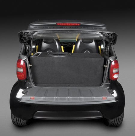 Данная машина презирает всякие традиции. Собственное имя пишется с маленькой буквы, модель и марка – в одно слово, а не раздельно. Всё это напоминает анекдот про молодого дипломата. Пишем: Smart For Two Cabrio. Получаем двойку. smart fortwo cabrio – это верное написание. В моторе 3 цилиндра, и он запрятан под багажник. Возникает вопрос: «А сколько цилиндров надо?», «А что, нельзя прятать мотор под пол багажника?». Малогабаритный объём багажника под стать размерам мотора, который сравним с домашним котом средней упитанности. Длина машины smart fortwo на ладонь длиннее, чем ширина его родственника «Мерседеса» S-класса. Оба могут оказаться «Брабусами». И какой машине это принесёт пользу – неизвестно.