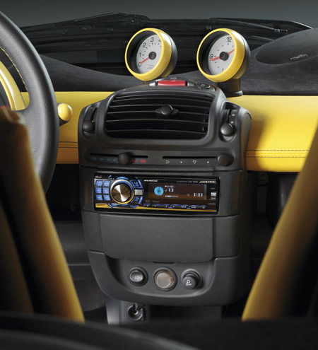 Традиции, не традиции, а музыка автомагнитолы Alpine необходима. И это не обсуждается. Система в smart оказалась на первый взгляд очень простой, а вот компоненты, из которых она состоит – очень достойные. Размещение, дизайн решительно нарушили все правила. О машине на этот счёт и говорить нечего