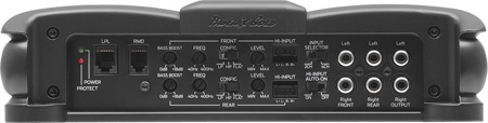 Приятно отличается этот усилитель автомобильный Phоеniх Gоld R300.4 своим ладным корпусом. Смотрится аппарат солидно, но небольшой (40 А) номинал предохранителя не позволит ставить рекорды в части энерговозможностей усилителя. (Ожидается, что таковые возможности будут в модели R500.4.) Сильноточные зажимы имеют диаметр 8,2 и 6 миллиметров. Можно подключить дистанционный регулятор уровня (LРL) и дисплей (RМD), одно и другое идет в качестве дополнительных опций. Данная конструкция предусматривает линейные выходы и входы уровней громкоговорителей. Есть возможность работать на два входа, активны в таком режиме входы Frоnt. По другим показателям обе пары каналов одинаковые. Максимально возможный подъем басового регулятора - 18 дБ при частоте в 45 Гц.