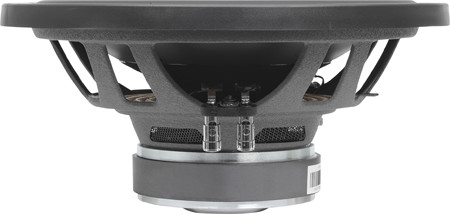 Сабвуферы автомобильные имеют диффузор, который включает в себя полипропиленовый сегмент, который устанавливают на переходный целлюлозный конус. Тут надо заметить, что фирменный бренд в настоящее время стал намного лучше, впрочем, это видно и так. Подвес шириной 28 мм. Держатель диффузора имеет хорошую заглушку. C-образный обод, расположенный на фланце корпуса позволит скрыть крепёжные головки. Магнит, на мой взгляд, наиболее скромный в этой группе, его размеры 134 х 26 мм, но отсутствие отверстия по оси даёт возможность минимизировать потерю магнитного потока. В качестве вентиляции катушки звука служат 5 окошек в форме трапеций, расположенных в корпусе. Провода к катушке проходят сквозь центрирующую шайбу.