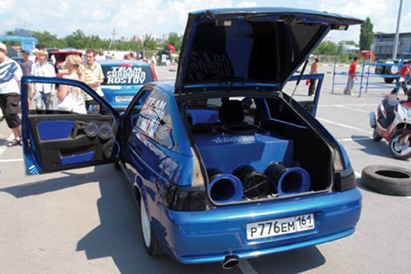 Жители города к новой для них разновидности спорта также не остались равнодушными, на соревновательных площадках было множество зрителей, для которых качественный звука в представленных машинах был просто открытием. Кроме того, среди представленных были и такие, которые были небезынтересны не только новичкам, но и опытным участникам и даже судьям. Прежде всего, пожалуй, это имеет отношение к новому проекту тюнинг-студии из Санкт-Петербурга «Интей». Не успокоившись на достигнутом успехе своей «золотой копеечки», они показали в Выборге «Ладу-Калину», а это с недавних пор у нас автомобиль практически государственной важности. Даже такого же цвета, что та самая машина...