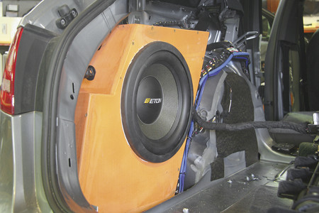 Сабвуферы автомобильные для системы подобного уровня требовались наиболее музыкальными, потому никаких фазоинверторов, лишь «герметичный» корпус и «с верхней полки» головка. На этой полке не так давно возник новенький Eton 10-630 HEX — вероятно, лучшее, что было сделано немцами в сабостроении за последние несколько лет. Разумеется, все авто прошло тотальную шумоизоляцию и виброизоляцию, отдельные места пришлось подвергнуть облагораживанию. В ходе установки использовались только лучшие из вибродемпфирующих материалов STP Gold, пластиковая обшивка дверей обработана жидким вибродемпфером.