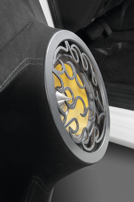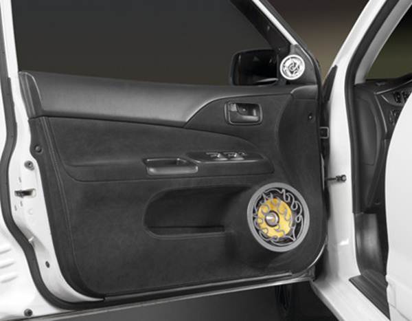 «Тёзка» сабвуфера T3R принадлежит к редко встречающейся разновидности «волноводных» пищалок, тут купол излучает в неглубокий рупор, что характерно — металлический и довольно массивный. Необычным является и мидбас, и не только по причине незнакомого имени, тут нашло применение фазовыравнивающее тело наобычной формы. В сочетании с немалым доворотом оси мидбаса это дало возможность оптимизировать свойства излучения, а доворот реализовали в форме могучего объёмного подиума, который затем был интегрирован в стилистику двери.