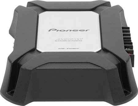 Предшествующий вариант автомагнитолы, GM-3400T, принимал участие в нашем тестировании год назад. В прежней модели незначительно поменялся дизайн, но все функции по нашему мнению остались в духе фирменных традиций. Блестящий чёрный корпус с вставками по бокам имеют цвет зрелой вишни, тем самым выделяется: качественная вещь, диагностическое бортовое устройство для не простых условий эксплуатации. Широкие (почти 1,4 см) силовые зажимы с неизбежным меднением плюсового терминала, показывают заботу о труде инсталляторов и неизменности собственным традициям. Выходные зажимы так же смотрятся основательно, хоть их ширина не имеет отличия от «стандартов» (8,5 мм). Относительно маленький номинал предохранителя — 25 А. Линейных выходов не имеется, тем ни менее имеются входы высокого уровня. Лидирующий в мире изготовитель, который производит автомобильные усилители Pioneer, по тенденции извлекает выгоду из фильтров, мы понимаем эти причины, но тем не менее их не одобряем. В автомобильные усилители можно включить только фильтр НЧ, и тот на установленную частоту 80000 кГц. Любопытно, что когда фильтр выключен, усилитель меняется на режим моно, автозвук от двух входов плюсуется. Так же по традиции нет басового регулятора.