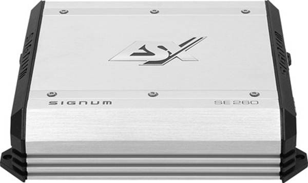 Автомобильные усилители ESX серии Signum имеют такой дизайн, что можно подумать что их создавали профессионалы, внешний вид SE260 одновременно и броский, и функциональный. Торцевые пластиковые накладки изготовлены на высоком уровне, не смотря на острые кромки на корпусе, если захочется можно обнаружить. Сильные и точные зажимы имеют одинаковый размер, они предназначены для кабеля диаметром до 0,6 см. Автомобильные усилители с суммарным номиналом предохранителей 30000 кА этого точно хватит. Здесь также имеются как входы с высоким уровнем, так и линейные выходы, вдобавок выходы в этом случае непрямые. Я считаю маловероятным, что кто — то этому будет удивлен, если предельный подъём баса (12 дБ) приходится (документально) на центральную частоту 45 Гц. Регулятор не работает при включённом фильтре ВЧ. Границы перестройки фильтров, несомненно имеют различия. Колебание среза фильтра НЧ вы сможете менять в границах от 40000 до 150000 кГц, у фильтра ВЧ граница колебания перестройки 60000 кГц и 1,2 кГц. Так что автомагнитолы ESX могут работать с сабвуфером, широкополосными фронтами или комбинированно с СЧ/ВЧ-головок, но никак не с басами трёхполосной системы.