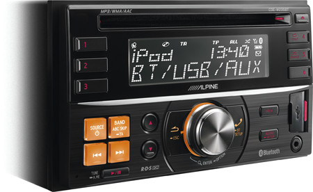 Новая разновидность CD-ресивера с форматом 2DIN Alpine CDE-W235BT может работать с музыкальными файлами типов mp3/WMA/AAC, которые записаны на диск или же на USB-накопитель. Крупногабаритный двухстрочный дисплей показывает информацию о композиции, которая играет в данный момент, и показания часов.