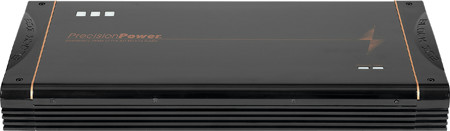 Автомобильные усилители Precision Power этого типа представлены в черном алюминиевом корпусе спинкой книзу. Панель верхней части выполнена из штампованного покрытия черным лаком. На панели расположены индикаторы перегрузки и включения. Защитой разъемов служат пластиковые законцовки. Чтобы включить акустику и питание, законцовку необходимо снимать.