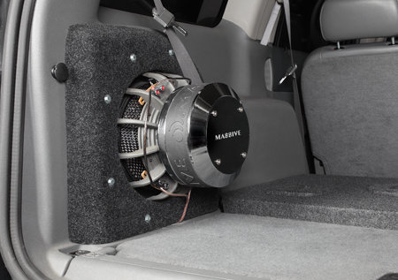 Возникли определенные проблемы с монтажом сабвуфера. Несмотря на то, что его объем был не таким уж и большим, но вот потребовалась дополнительная глубина. Именно по этой причине установить все сразу же не получилось. Специалисты нашли другой выход. Так, они подготовили специальный корпус, а также расположили его в соответствующую нишу. Для закрепления динамика был применен специальный магнит. Это дало возможность не только оставить основную площадь в багажнике, но и не оказать влияние на внешнее оборудование. В результате, сразу же все видят, что именно здесь установлен сабвуфер.