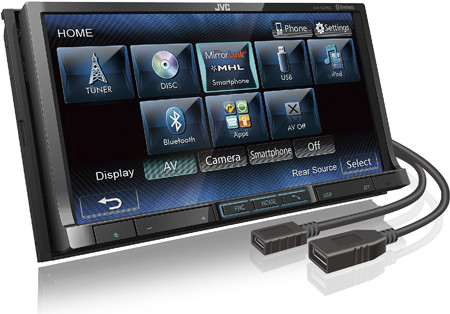 Современное оборудование, оснащенное такой функцией, как MirrorLink. К этой категории можно отнести JVC KW-NSX700EE