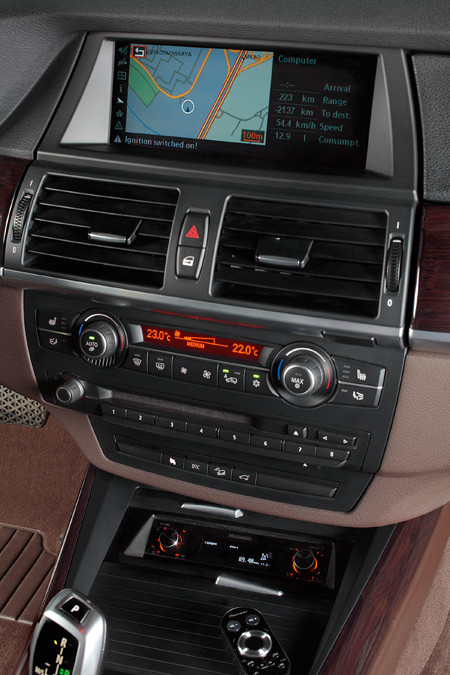 Однако любопытство вызывает то, что в новом объекте для такого же субъекта мастера снова использовали собственную фирменную технику: как в Audi, расчленили «головку» - была отделена лицевая панель от основного блока. Правда, из лицевой панели не пришлось выносить дисплей – для панели место нашли в центральной консоли, прямо под крышкой пепельницы. Но крышку и не обязательно открывать для управления системой – рулевые кнопочки были перенаправлены на Pioneer.