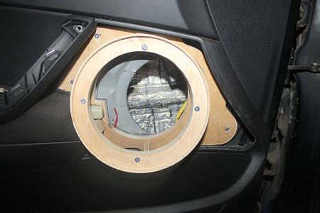 на стандартных местах. На дверной карте установили заводские динамики и