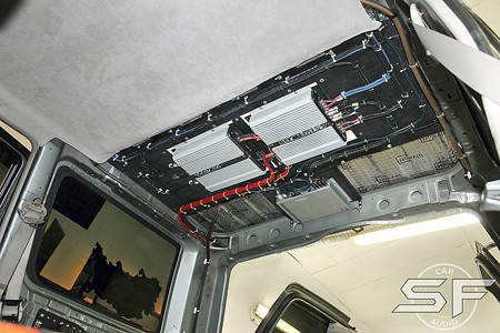 Силовую арматуру разместили в боковой багажной нише, а в другой – саб с