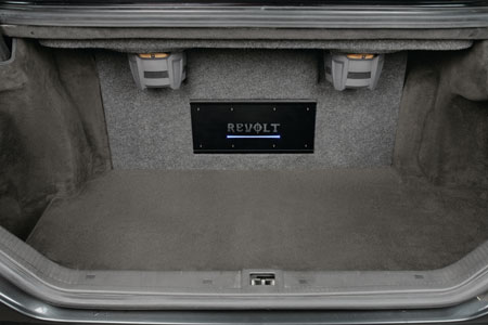 В центральную консоль довольно органично поместился одиночный корпус 7900, выносной блок, в котором сосредотачиваются все мозг источника процессора, отправился обратно в багажный отдел, сейчас можно было приступить к акустике, сабу и усилителям. Точнее, сабам и усилителям. В системе только 1 усилитель, 5-канальный Revolt, его достаточно на все с учетом того, что не предусматривало техническое задание 5.1. И в действительности 2 саба. Для редкого авто смогли отыскать также редкие (по утверждениям Александра, он нашел 2 последних не пристроенных) фри-эйерные DLS-головки, фиолетки с которыми рядом не стояли. Они поместились в силовую мощную полочку, набираемую из 30-миллиметровой фанеры, и уже типа этого узла срашивались со стандартной стальной под стеклом сзади. При этом хозяин требовал, чтобы стандартными оставили защитные сеточки. Под полочкой на вертикальные панели разместили усилитель «1 на всех», а на второй стороне под спинкой сиденья – кроссоверы акустики фронта.