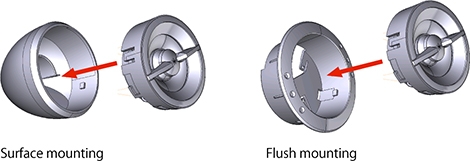 Отдельный блок твитер поверхности и заподлицо с он может быть включен в различных установках. Навесной монтаж позволяет устанавливать на приборной панели, в то время как монтаж позволяет встроенный монтаж в столбах.