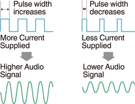 Использование режимов устройства MOS-FET, усилитель класса D Схема способна доставить невероятную производительность в компактных размерах. В цифровой усилитель широтно-импульсного модулятора (ШИМ) выражает аудиосигнал низкой частоты в качестве широкого импульса, и звуковой сигнал высокой частоты в виде узкого импульса. Это затем подвергается цифро-аналоговое преобразование для вывода, что является основой не цифровых носителей информации, следовательно, превосходным сродством к цифровым источникам. Высокой эффективности преобразования энергии, тем меньше потери энергии и меньше тепла, поэтому отсутствует громоздкий радиатор.