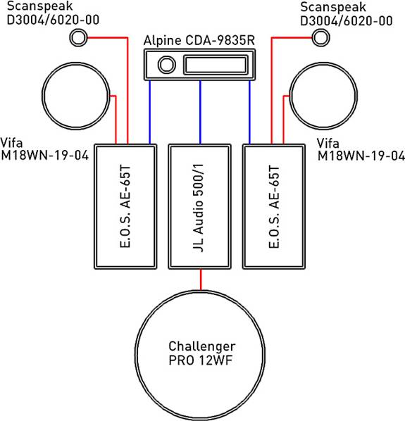 Автомагнитола Alpine, автоакустика Scanspeak, усилители автомобильные E.O.S. AE-65T и JL Audio ставим в Opel Vectra B
