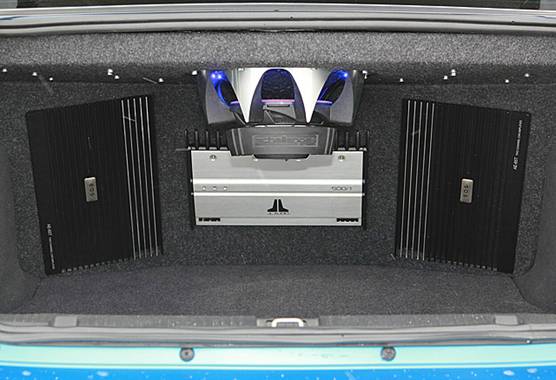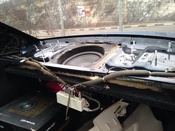 Монтаж усилителей произведен на панели, расположенные за задним сиденьем,