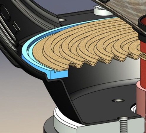 Диффузор прикреплен непосредственно к звуковой катушке. Для этого в