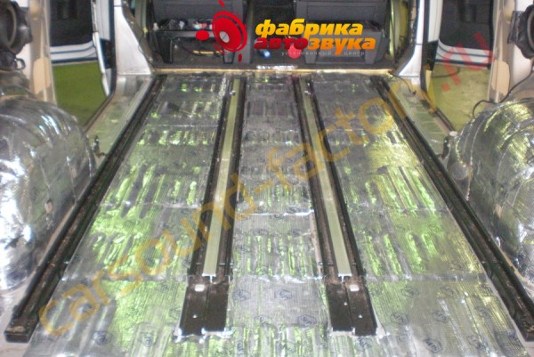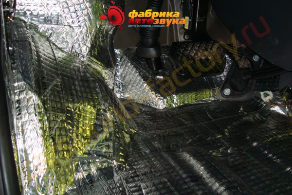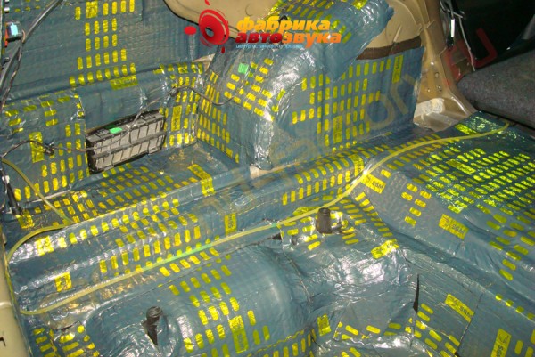 Потом прямо на него клеится шумопоглощающий материал на