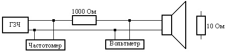 присутствующего вольтметра. В этом случае динамик заменяют сопротивлением