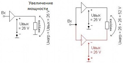 Чтобы лучше понять, оказывается, что перед нами последовательно соединенные батарейки, к примеру, от ПДУ. Исходя из этого, при инсталляции пары усилителей крайними выходами к динамику, выходная мощность увеличивается в пару раз, сравнительно с одним усилителем. Результат отличный.