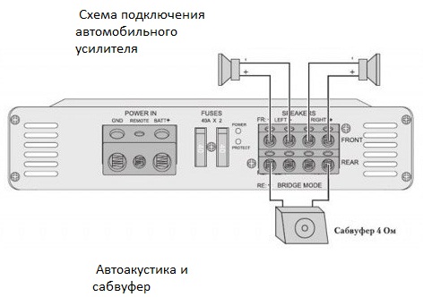 Подытоживая? рассмотрим совет сайта — для того, чтобы организовать мостовое низкоомное подключение, наиболее правильно применять сабвуферные 2-канальные динамики, стремящихся к сабу, а, кроме того, имеющих настройки сабсоника, низкочастотной фильтрацией и фазовыми поворотами.