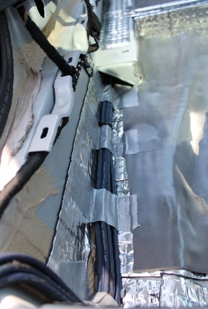 проложили со стороны водителя в углу, где пришлось отвернуть железную