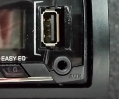 Модель JVC KD-X330BTE, как и другие бюджетные автомагнитолы JVC, не подразумевает использование диска. Дорога искусства к душе проходит по эфирным волнам или же через USB-разъем. Также можно задействовать аналоговый вход AUX. Единственный на лицевой панели USB-разъем может прикрываться крышкой. Гнездо подсветки не имеет. Полоской белого света обозначается край крышки. Невозможно не рассмотреть тот факт, что в аспекте энергетической насыщенности USB-разъема были достигнуты новые высоты. Ранее это значение определялось значением 1А. В данном же случае показатель увеличился на 50 процентов.
