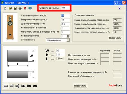 установить скорость звучания, которая по умолчанию составляет 344 м/секунду при