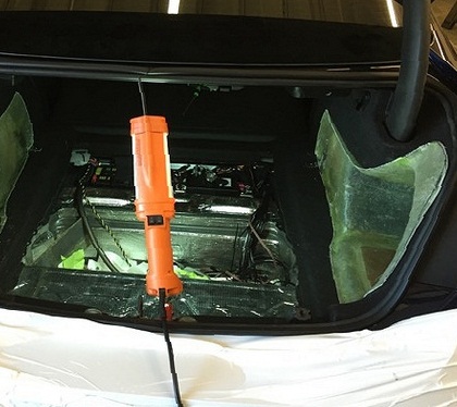 на дне. Для облегчения доступа к коробке предохранителей в багажном отсеке,