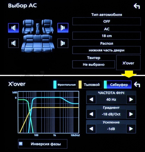 фронтов происходит выбор частоты среза ФВЧ, усиление и крутизна. Для твитеров