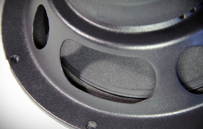 Следующее, что бросается в глаза — не типичность подвеса. Выделяется он своей шириной, что придает динамику вид миниатюрного саба. Изготавливается он из полиуретана вспененного типа. Материал великолепно функционирует при внушительном ходе. Отрицательная же сторона заключается в том, что в мороз не рекомендуется динамик запускать на полную мощность без предварительного прогрева.