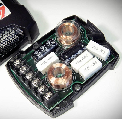 Габариты кроссоверов ограниченные. Их форма была заимствована у итальянской торговой марки. Заметна плотная компоновка компонентов. Кроссовер составлен фильтрами 2-го уровня. Имеется возможность корректировки уровня твитеров. По обыкновению в данном ценовом сегменте находят применение более простые кроссоверы. В данном случае катушки устраиваются на сердечниках воздушного типа. Имеются здесь и отрицательные стороны, которые проявятся позднее.